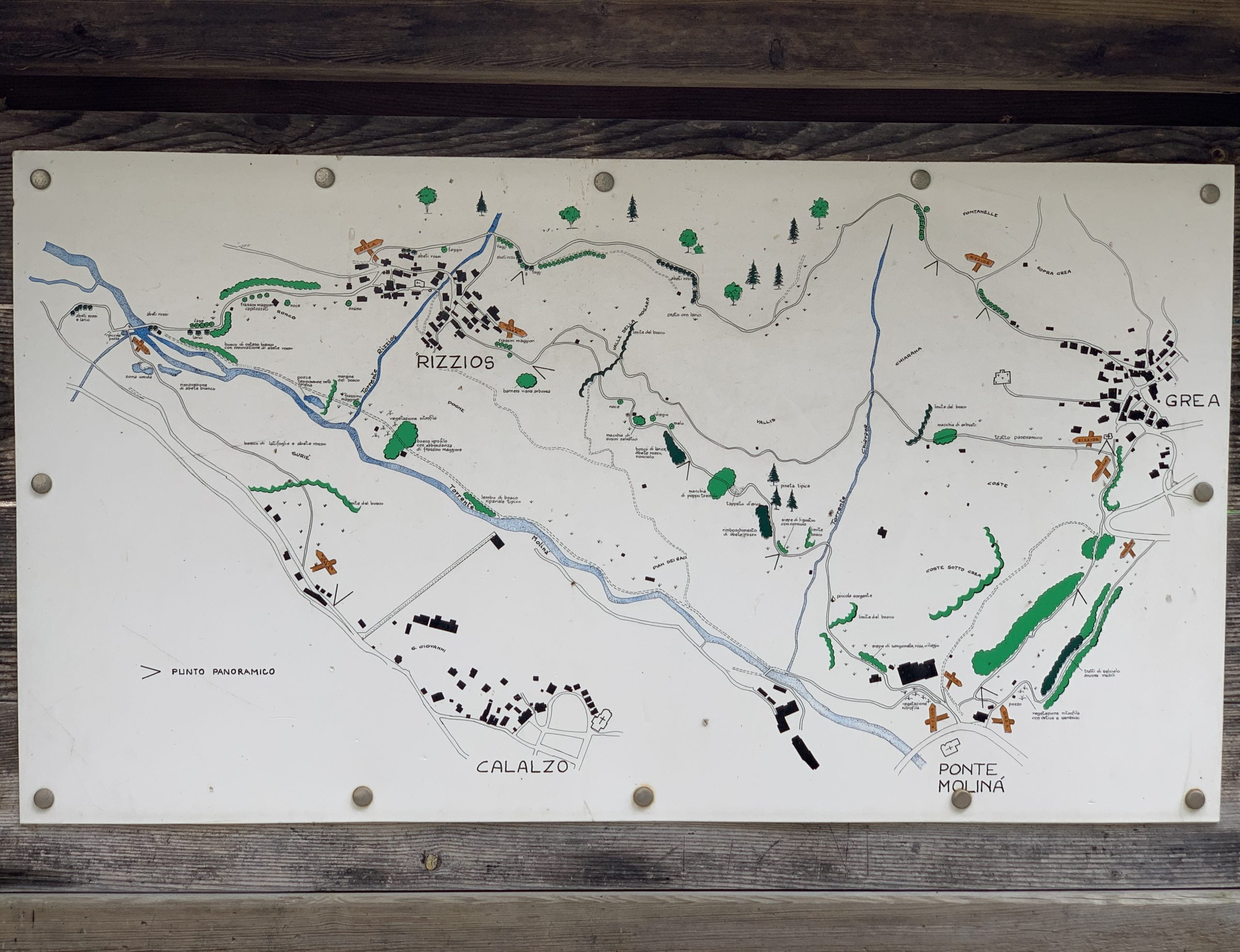 Lungo il sentiero che porta fino a Grea, vi troverete ad un bivio: se si scende si arriva al Ponte Molinà, e poi giù fino al Lago di Centro Cadore, ma noi svoltiamo a sinistra per raggiungere il minuscolo paese di Grea, frazione di Domegge di Cadore.